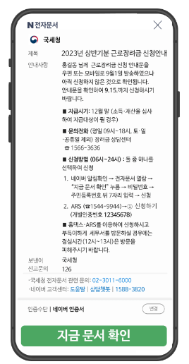 ➡️근로장려금 신청 안내 대상자에게 송부한 안내문을 보고 개별인증번호를 확인 후 간편하게 신청가능
