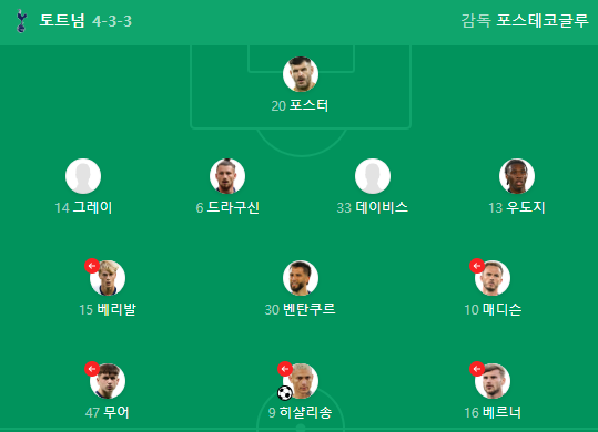 🔴 로메로, 판더벤, 솔란케, 히샬리송, 드라구신, 벤 데이비스 부상으로 출전 불가